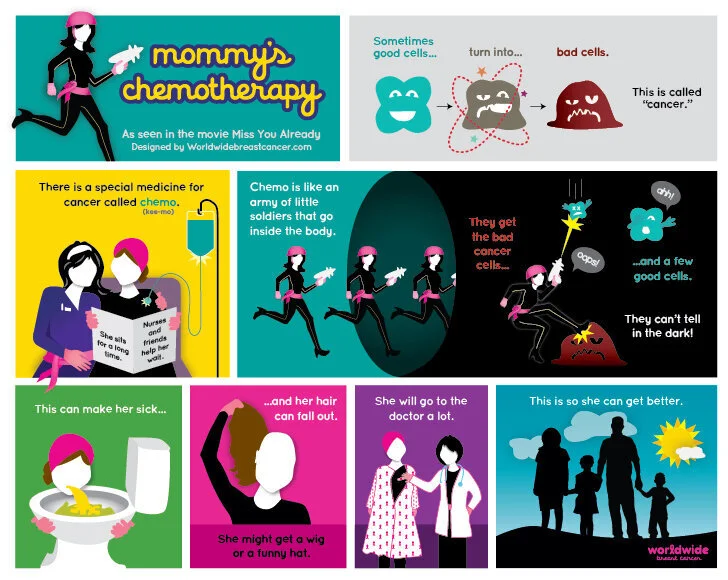 The main character is designed after my childhood friend Suzanne who had breast cancer. Here is a photo of us when we were playing with her wigs and trying to laugh during a hard time. Can you see the resemblance in the scenes?
