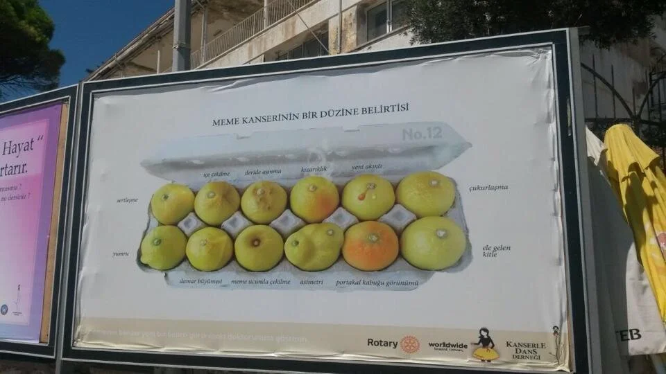 Ebru: The initiative took place in 12 cities on Turkey’s Aegean side where KETEM set up booths and screening vans at various locations like shopping malls, universities, city centers. Volunteers and staff all received training about breast self-examinations, screenings and signs of breast cancer with the “Lemon” campaign materials. Even with this public presence, we would not have attracted as many people if it weren’t for the campaign. Our volunteers told us that the “Lemons" helped explain the disease more clearly during training. It drew a lot of attention. Families would visit our booths to learn about breast cancer signs and symptoms. We shared more detailed educational materials with them, but nothing could replace the “Know your Lemons” visual aid. When women looked at the picture, they engaged in the conversations and asked many questions.