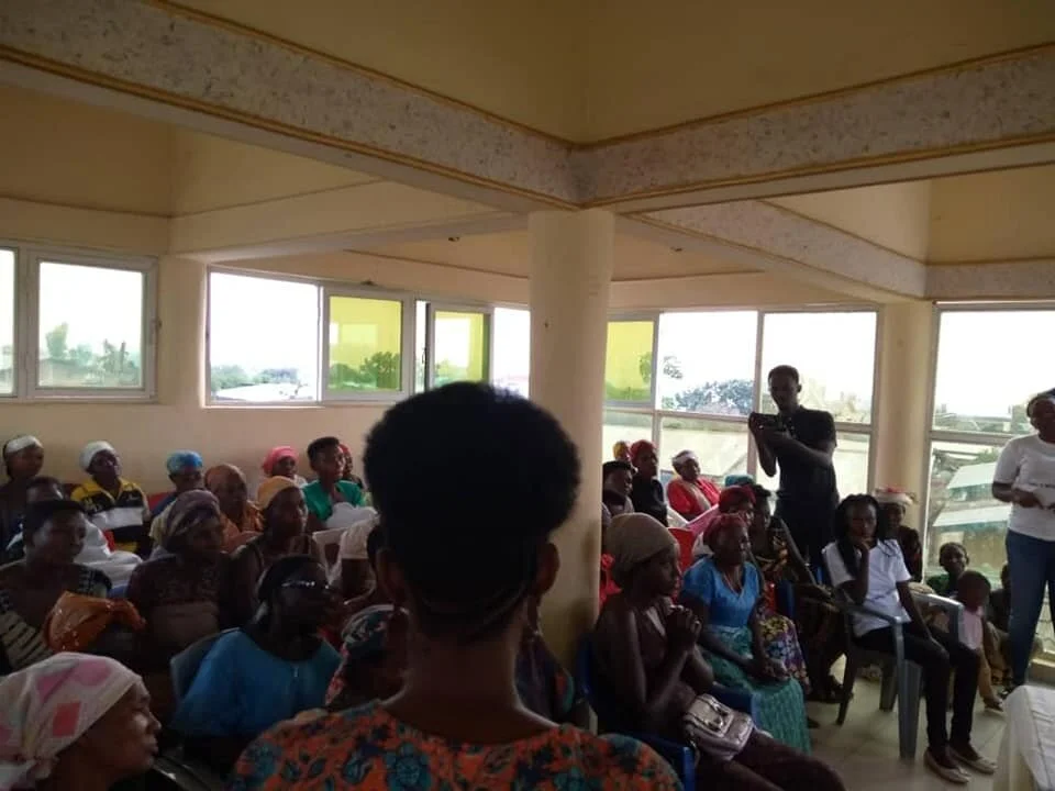 Men & women in Burundi, Africa attending a Know Your Lemons Breast Health Session with Uzima