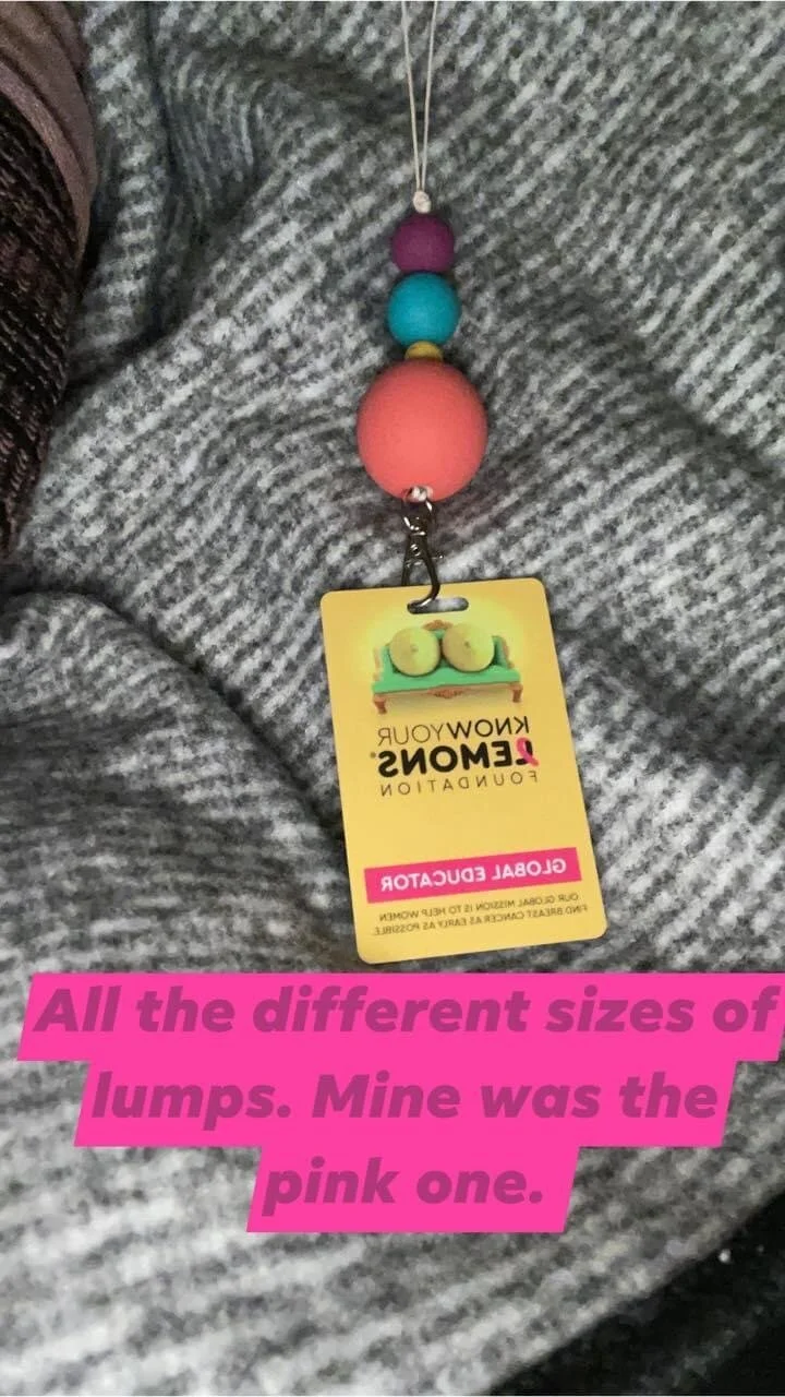 When I received my KYL Global Educator lanyard that was the cherry on top. That pink wooden ball...the one that identifies as what a lump feels like found by accident...that was me. That was my lump. I knew for a fact that KYL was mine to be a part of and spread the word of breast health and the importance of self exams.