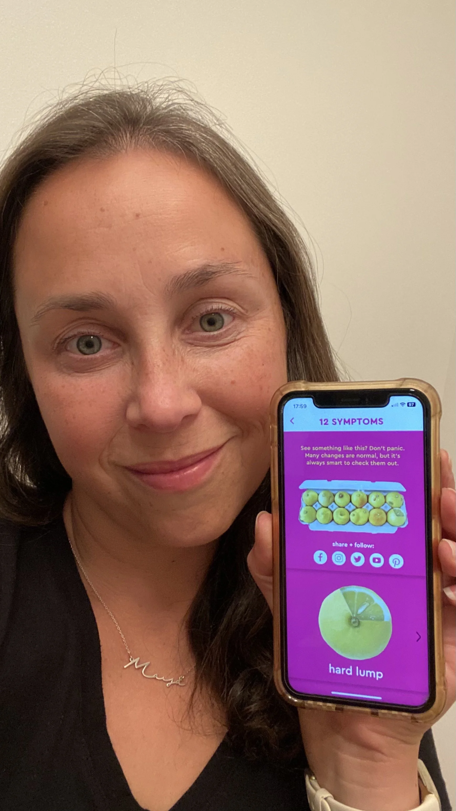 I first came across Know Your Lemons organization by browsing internet, on Instagram, and I found it really, really helpful and I wish that I had seen it years ago and recognized some signs of breast cancer. Mine was a lump that I found myself, but it was slightly warm and reddish. So that was one of the signs that's mentioned on the 12 signs chart. I wish I had the app sooner, that would have prompted me to do regular monthly breast exams, which up until my diagnosis, I didn't do that often at all, as my surgeon said almost two-centimeter growth doesn't happen overnight. So my tumor must have taken years to develop. If I had been doing the checkups regularly, it might have been caught earlier, it might have not needed as extensive treatment. So what I take from this is, please advocate for yourself. Please do your checkups. Early detection saves lives. So if you don't have the app already, please download Know Your Lemons. Follow the very easy instructions on how to best do your breast exams, and make sure you know what's normal for you, so in case something does come up, that might not seem as normal you know how to act straight away.