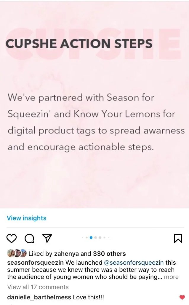Together, we reached hundreds of thousands of women with our messaging, through collaborative social media posts, a series of Instagram lives, and a joint campaign with our wonderful partner, Cupshe.
